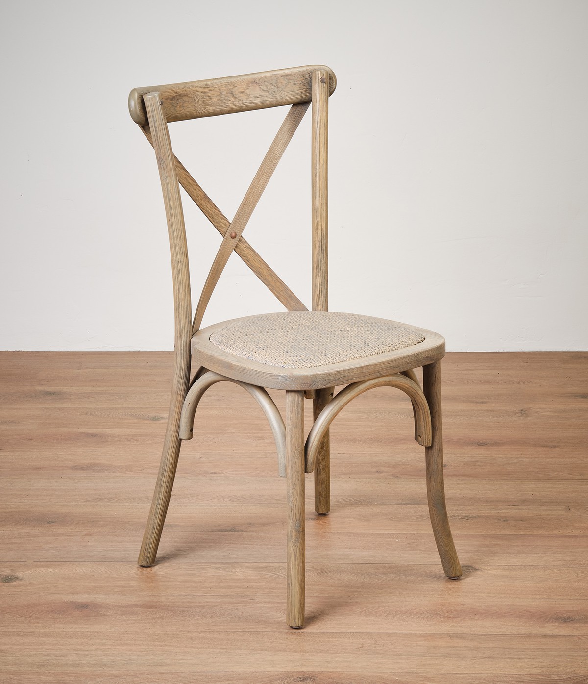 Timeless design with a contemporary edge.Finished in mottled grey, this cross back chair delivers subtle depth and soft, weathered character.