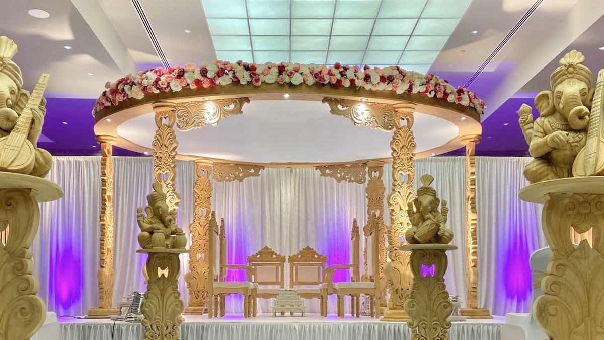 Wooden Carved 6 Pillar Mandap - Leicestershire