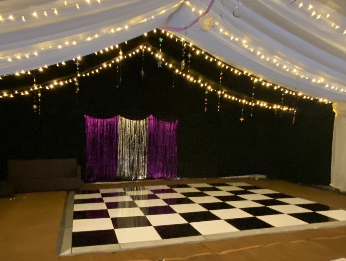 Grumpy Joes black and white dance floor, goes up to 18ft x 18ft.Click here for more products from this seller
